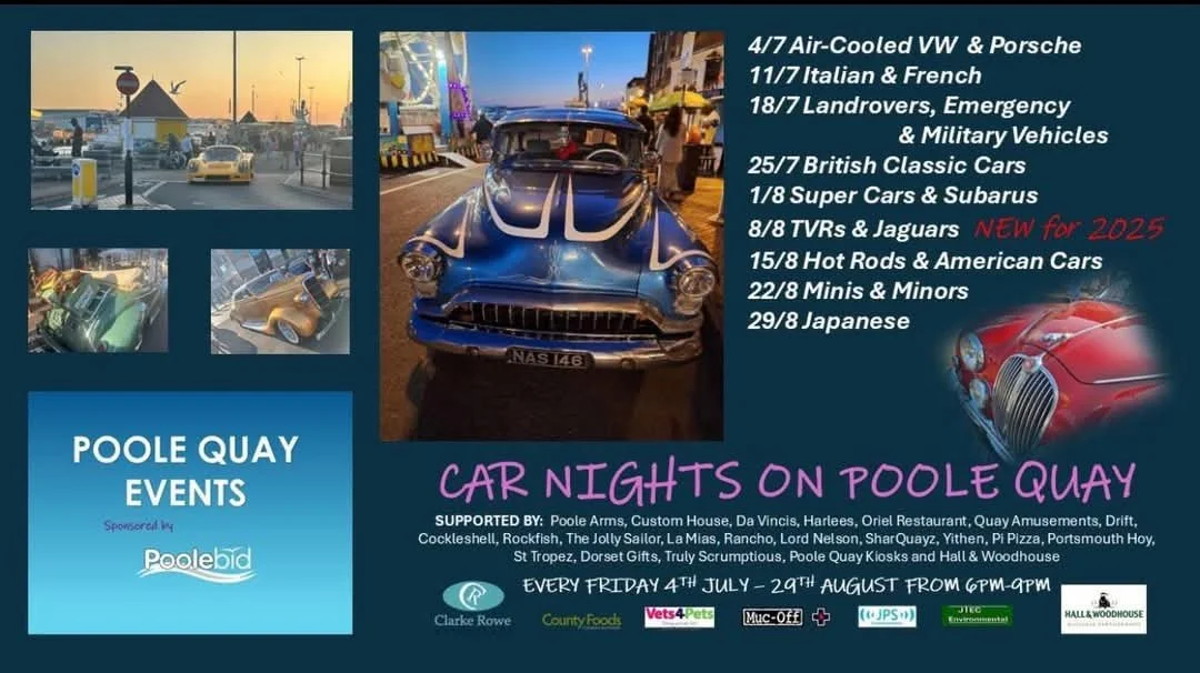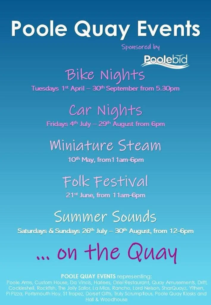 Join us on Poole Quay for food and drinks whilst enjoying a variety of fun events throughout the summer, including popular boat shows, car nights, festivals, and fireworks.